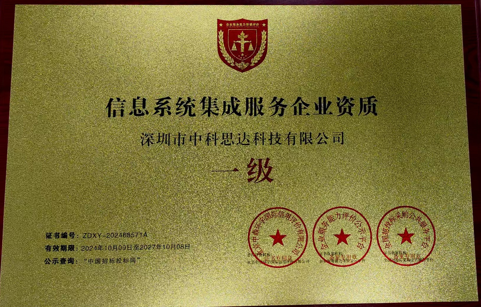 2024年10月获得“信息系统集成服务企业资质”一级资质