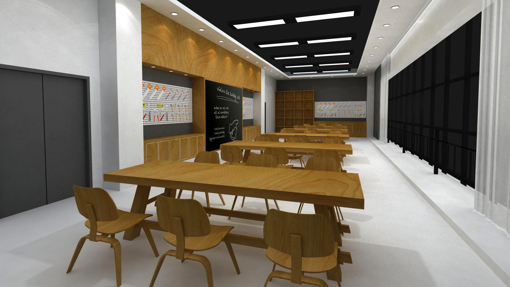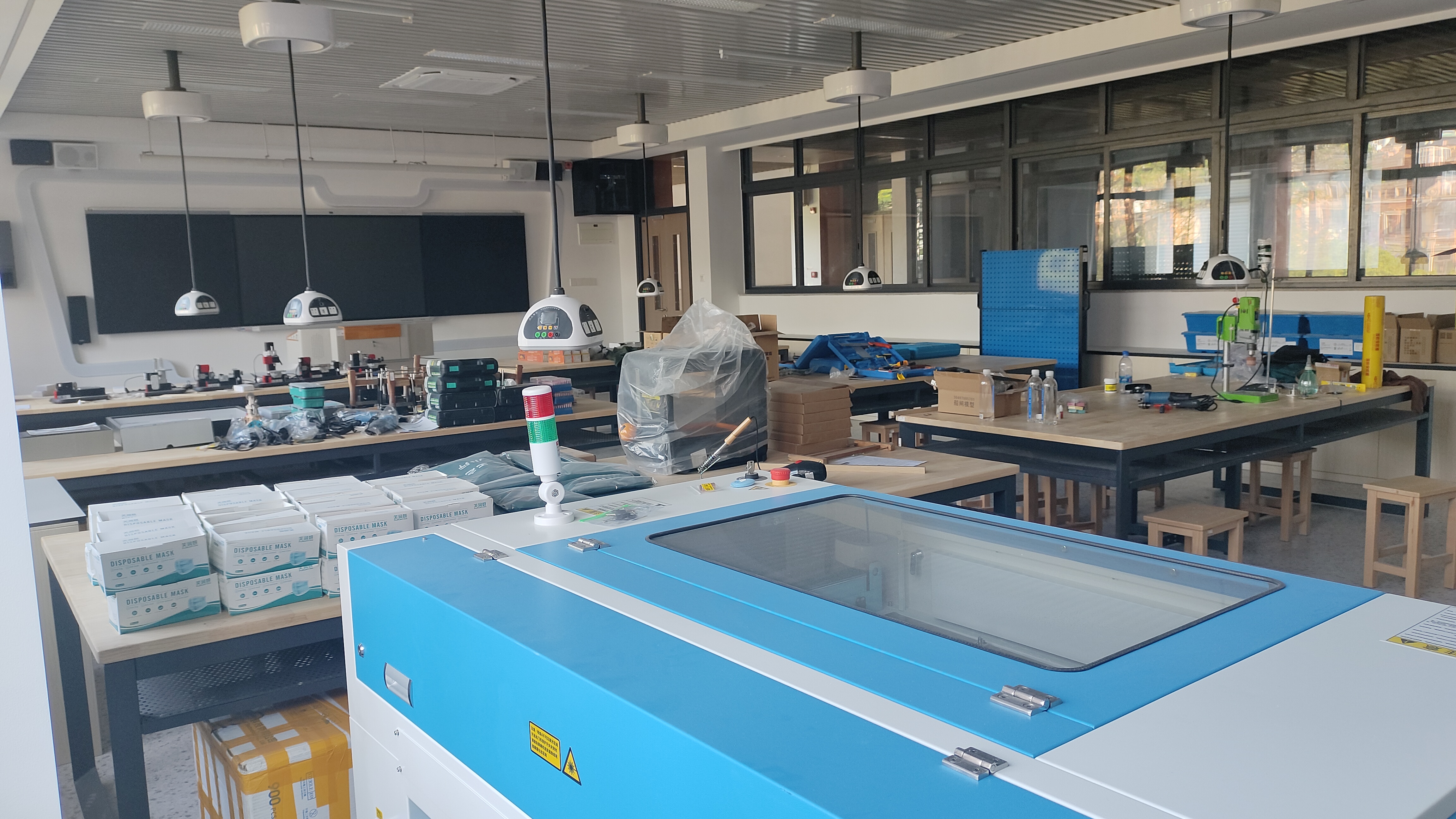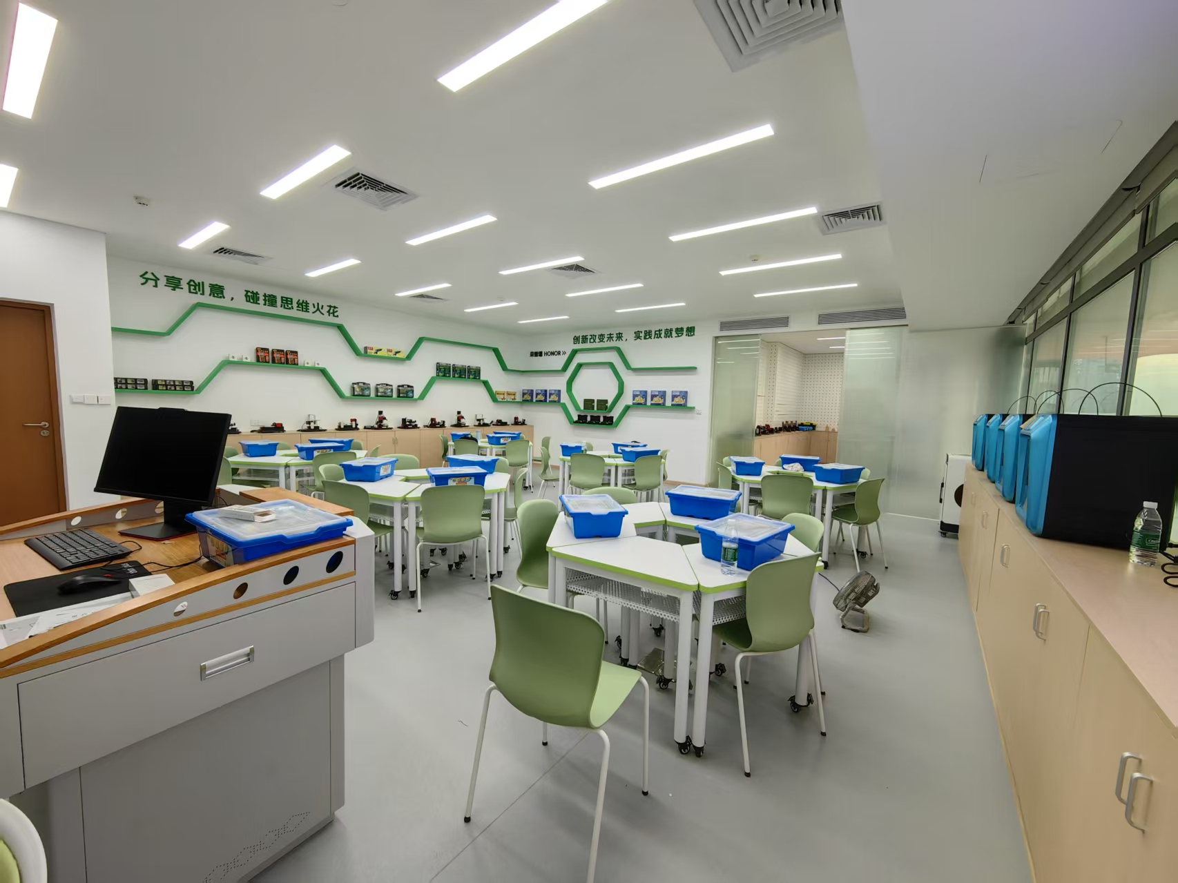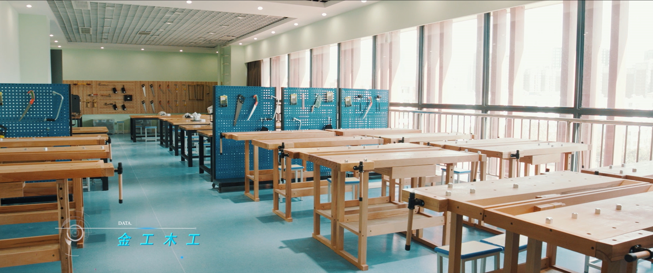 在以金工木工为特色的教室里,设置了塑形区、修整区和协作区,以便学生进行材料塑形及想法交流;而在材料储备区,划分了金属料区和木料区,让学生便捷选取合适材料开展创作。