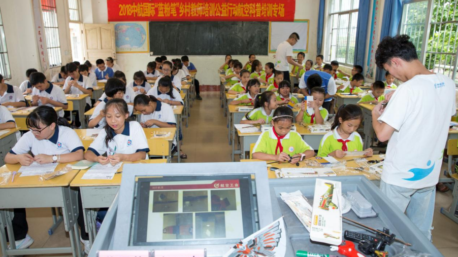 2018-07-062018年7月,联合福田区教育局、中航国际在广西省凌云开展“蓝粉笔”航空科普扶贫活动